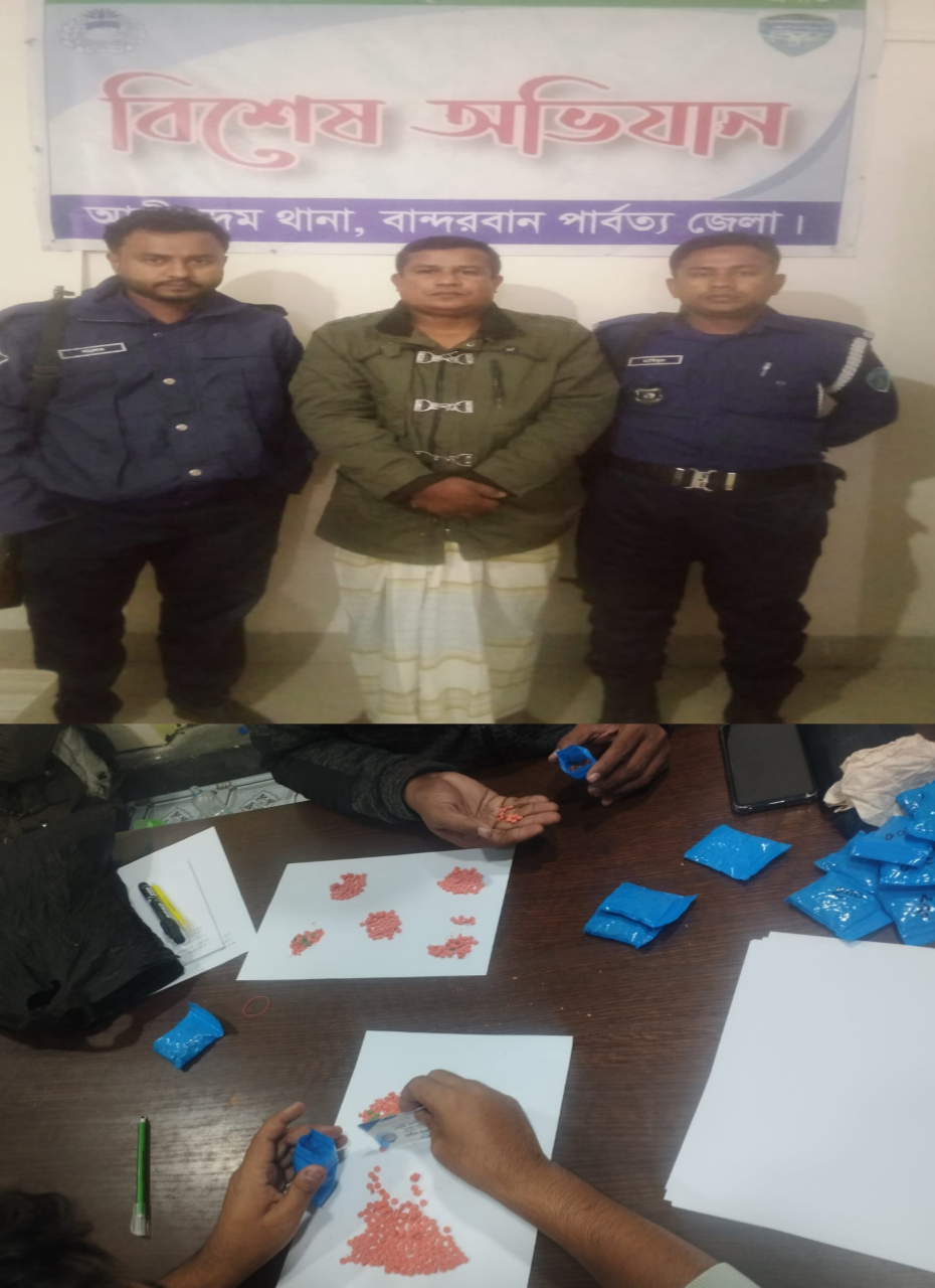 এ সময় আলীকদম প্রেস ক্লাবের সভাপতি জনাব মমতাজ উদ্দিন এর ছোট ভাই রুহুল আমিন এর বাসা থেকে (৩৮০০) পিচ ইয়াবা সহ, রুহুল আমিনকে আটক করা হয় এবং মমতাজ উদ্দিন ঘটনার স্থান থেকে পালিয়ে যেতে সক্ষম হয়।